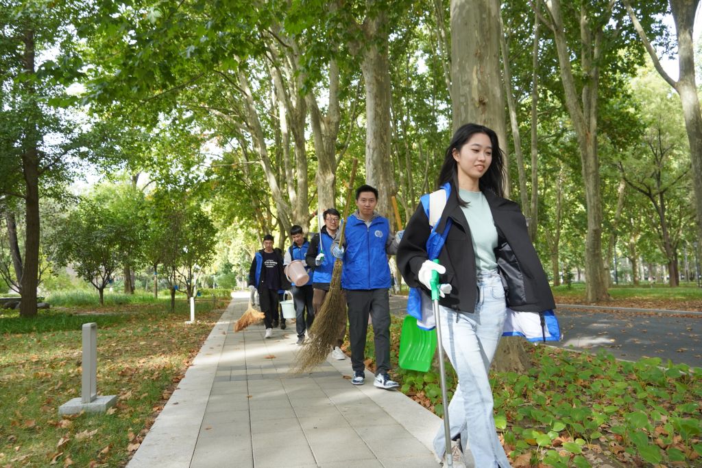 10月中旬秋高气爽,在温暖的午后阳光中,同学们热情高涨、干劲十足,积极投入到校园清扫中。