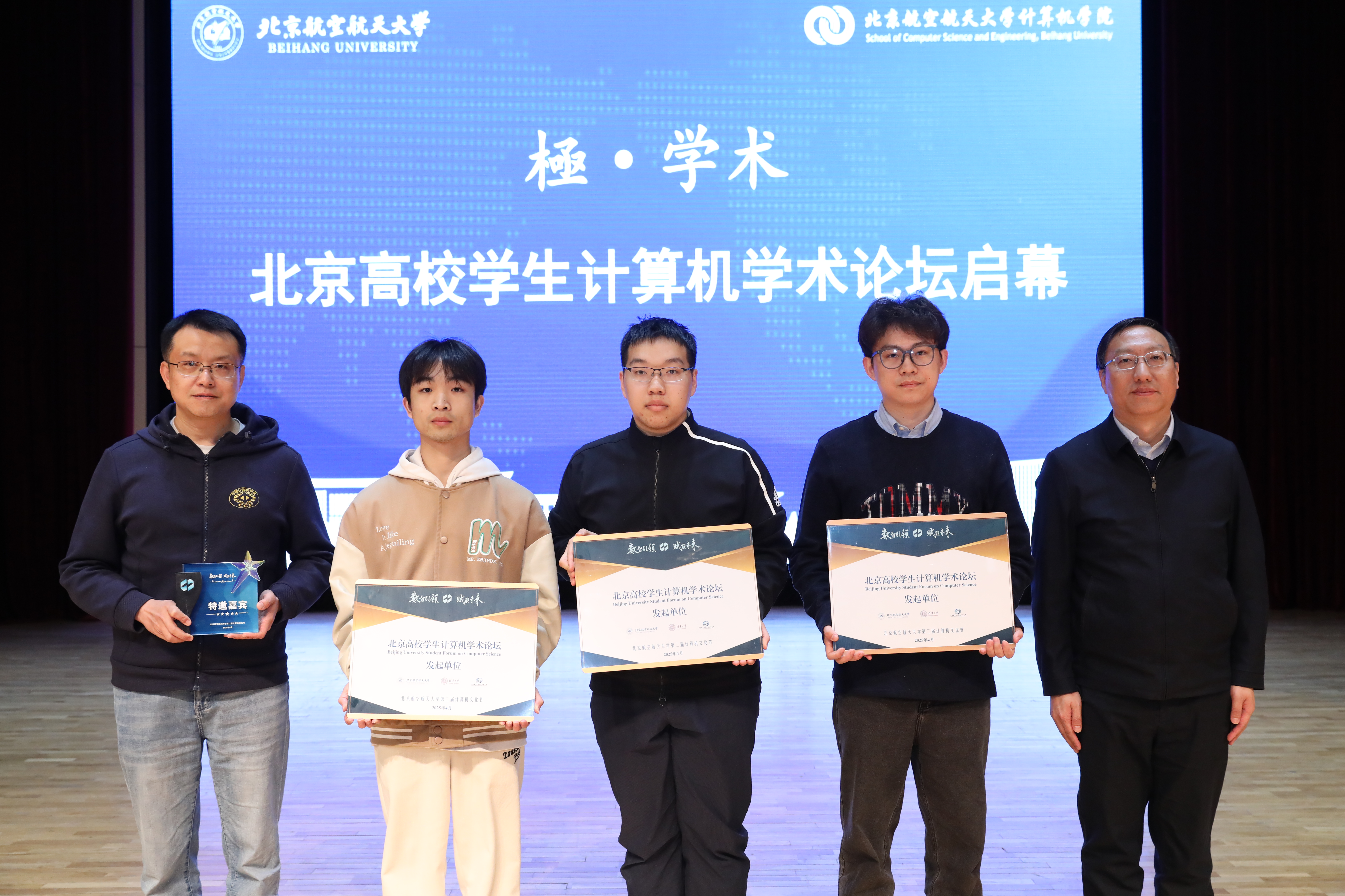 在学术板块,中国计算机学会(CCF)北航学生分会联合清华、中科院计算所学生分会发起“北京高校学生计算机学术论坛”,搭建跨校学术平台。吴国斌担任学术板块荣誉顾问,他代表中国计算机学会对本次学术论坛的举办表示支持,并寄语学生深化交叉融合、追求卓越。吕金虎为三家论坛发起单位及荣誉顾问授牌。