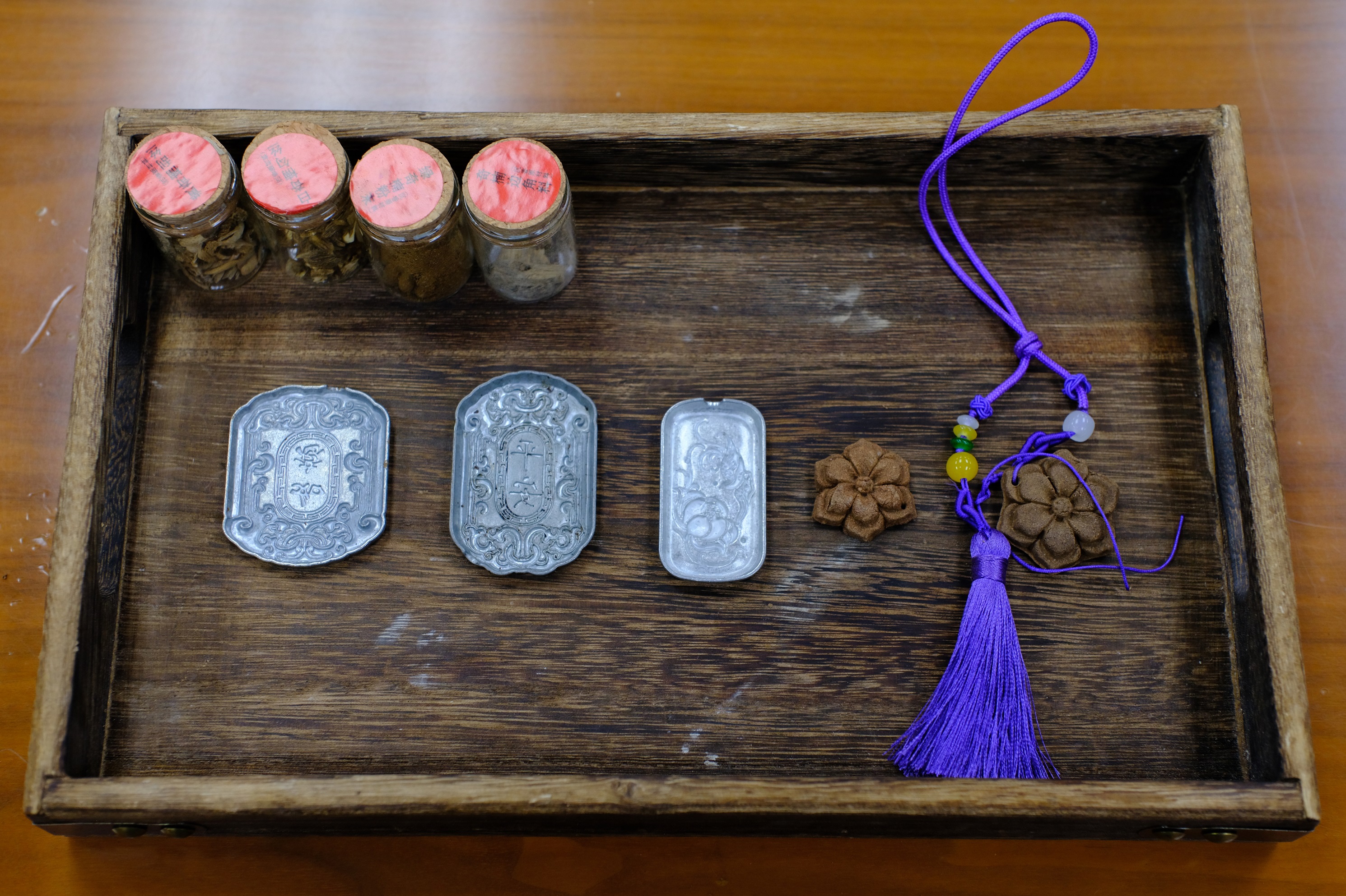 香牌,又称"香佩",是一种不用烧薰便能散发香气的香品,以天然香粉加上植物粘结剂精制而成,既可随身佩戴薰衣香体,也可作为挂饰驱邪避害,具有宁神静心、调中理气的养生功效。