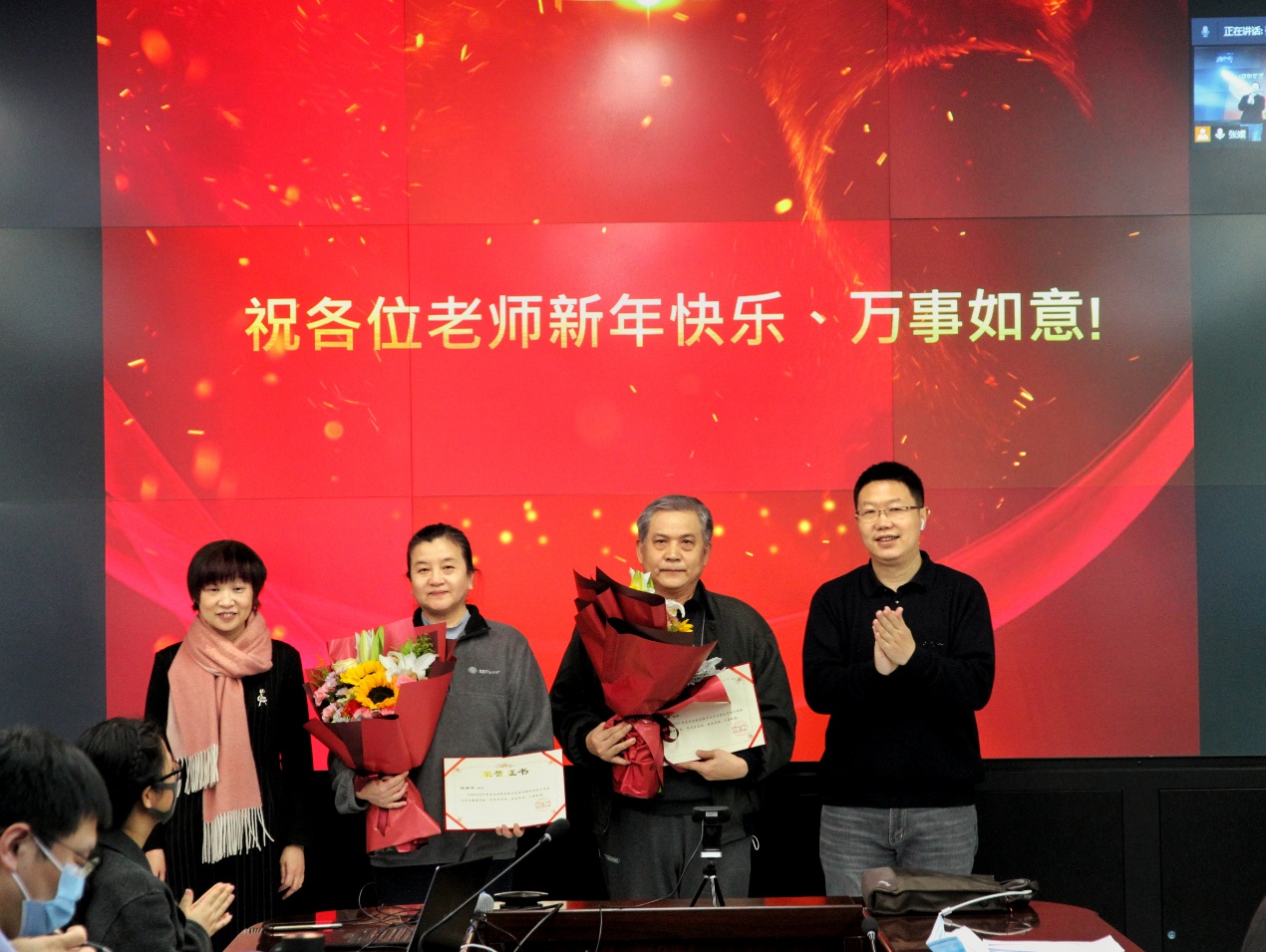 最后,王蕴红书记总结发言。王书记代表学院向为教育事业奉献了青春、智慧和力量,为学院发展做出巨大贡献的荣休老师们表示诚挚的感谢和崇高的敬意,也对新教师的加入表达了热烈欢迎。王书记表示,2020年全体师生团结奋进,共克时艰。学院的发展和进步承载着每位老师的辛勤努力和无私付出。2021年学院将面临新的挑战,我们将继续发扬学院优良传统,坚持立德树人,信息强国,不忘初心,砥砺前行,在新的征程中不断奋进!