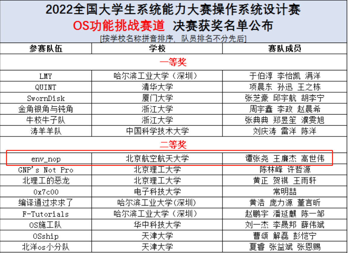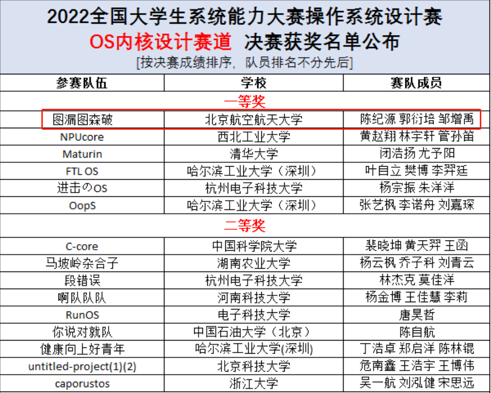 图2:操作系统内核设计赛部分获奖队伍