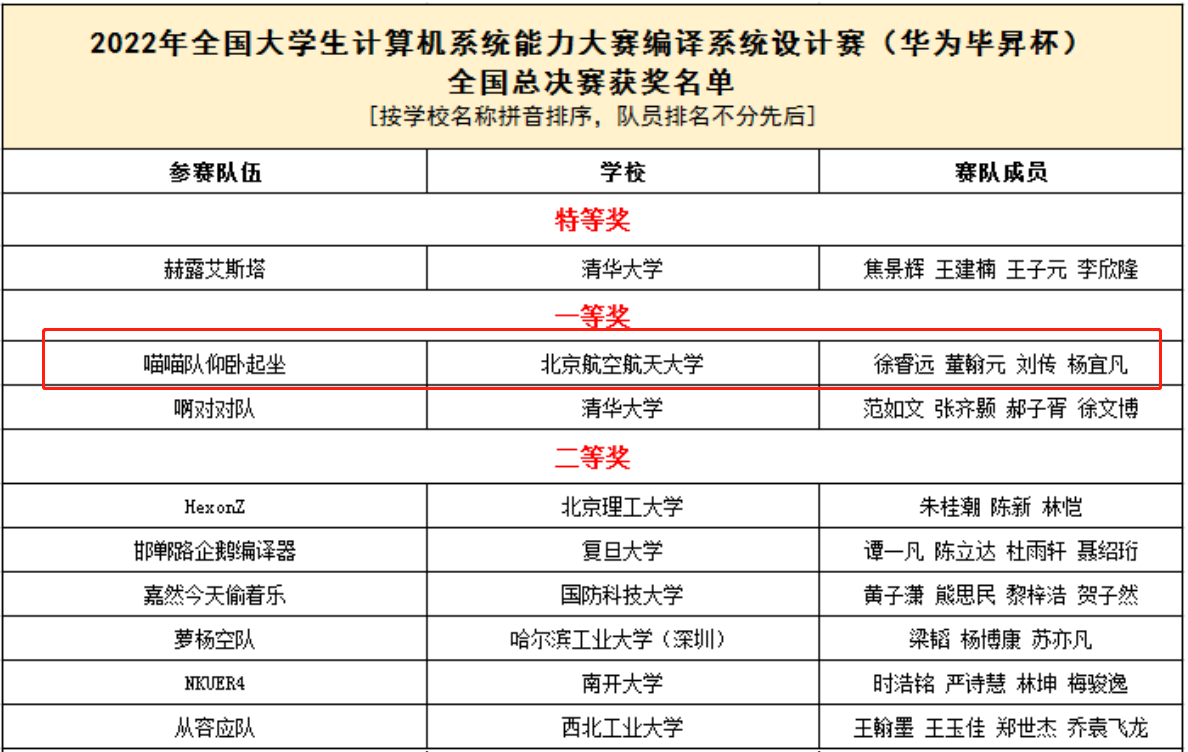 图4:编译系统设计赛部分获奖队伍
