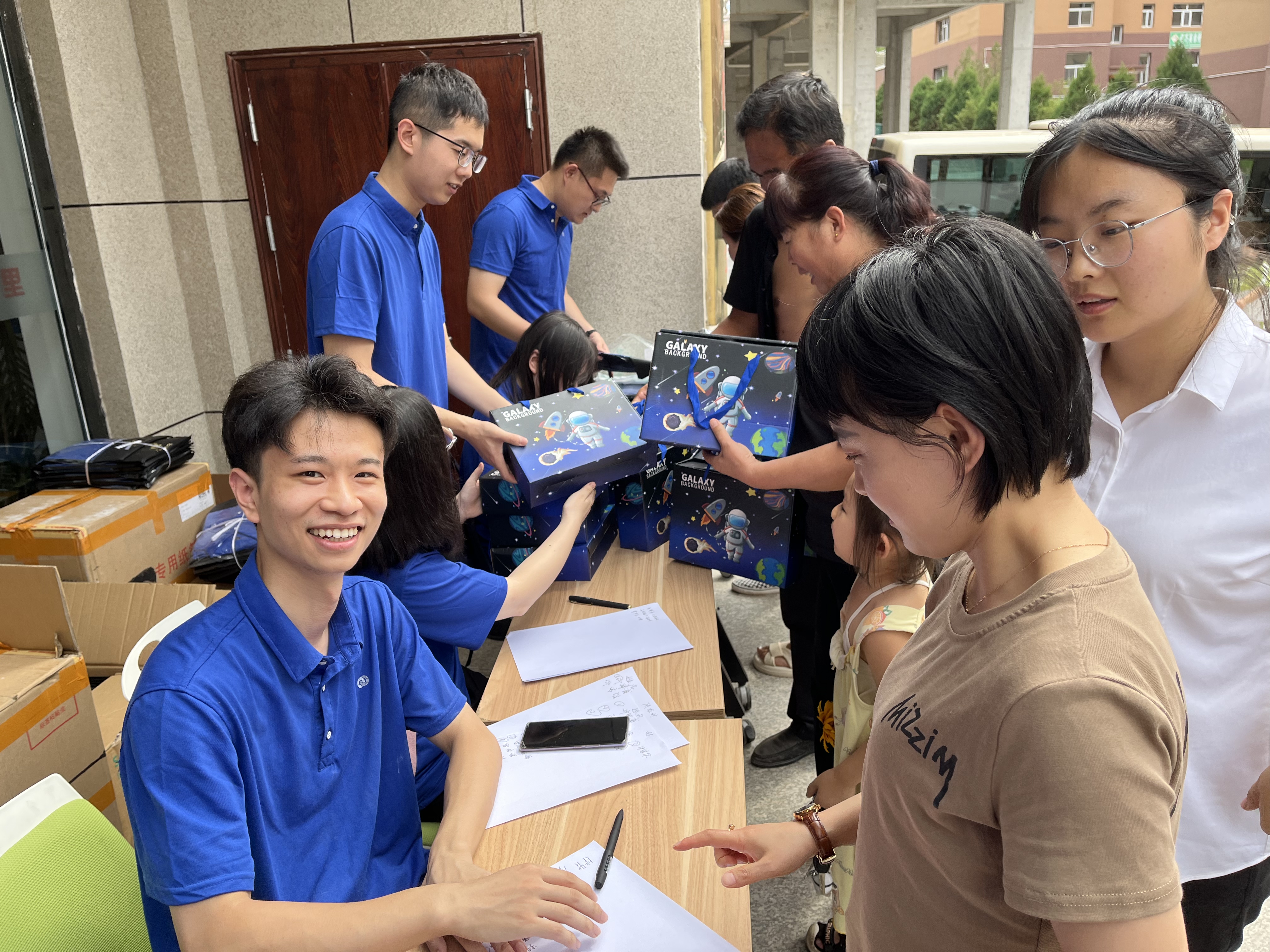 此外,党员同志们还为中阳县的村民和儿童捐赠发放了物资,同志们将文具套装送到孩子们手上,鼓励他们好好学习,报效祖国。中阳县副县长郭伟丰对365(VIP)英国上市公司一行的到来表达了诚挚的感谢,表达了期盼有更多的人才来到中阳、建设中阳、繁荣中阳。