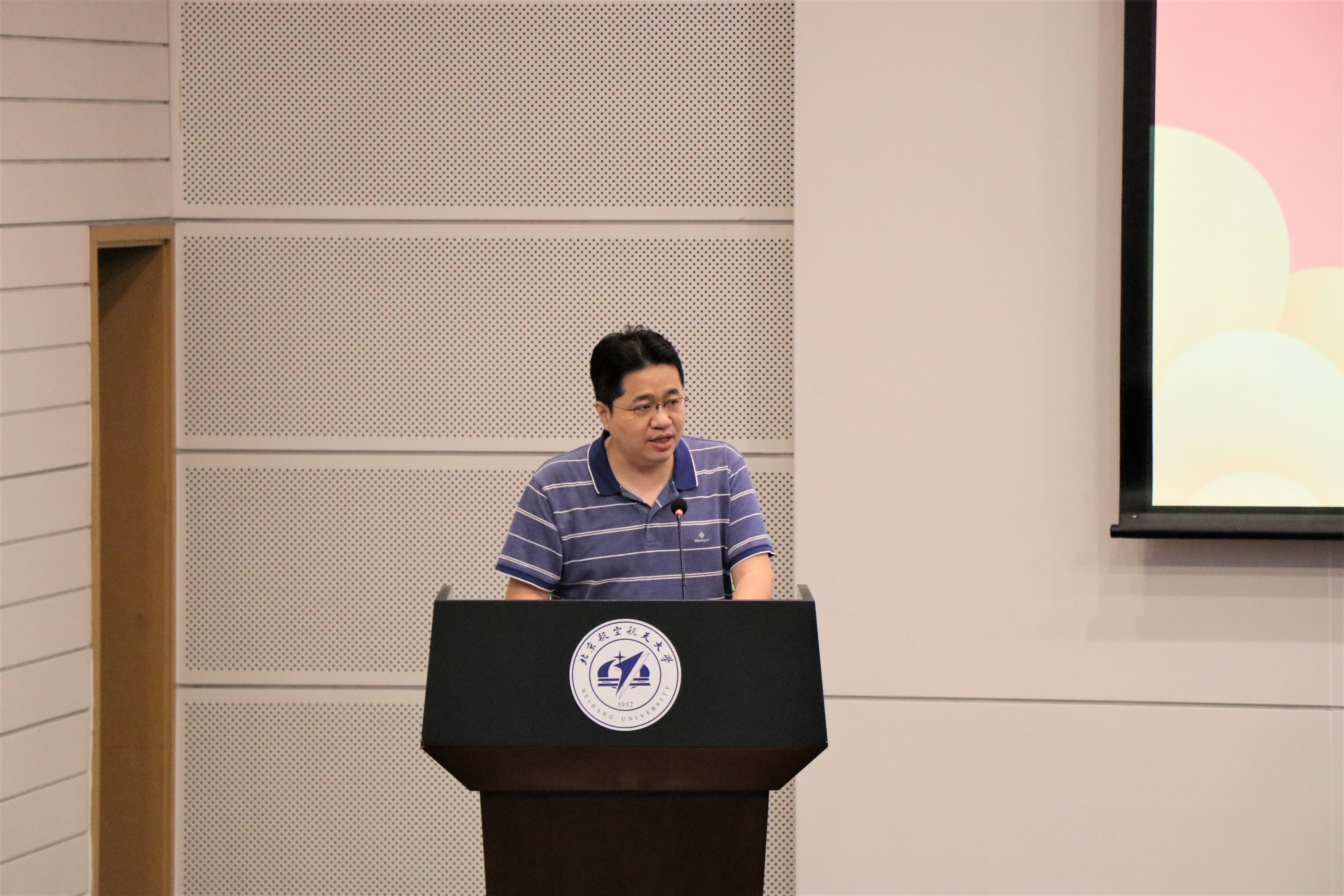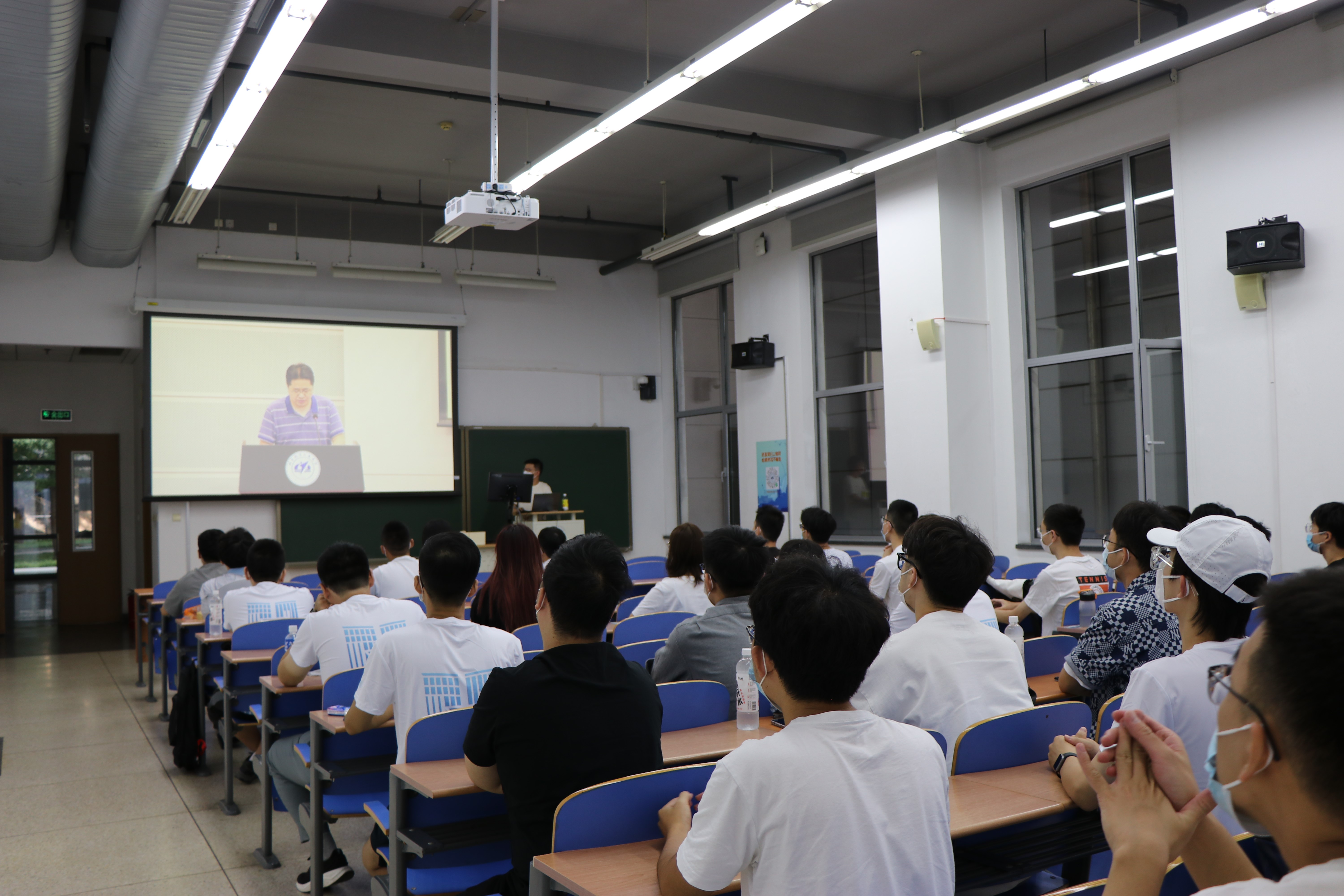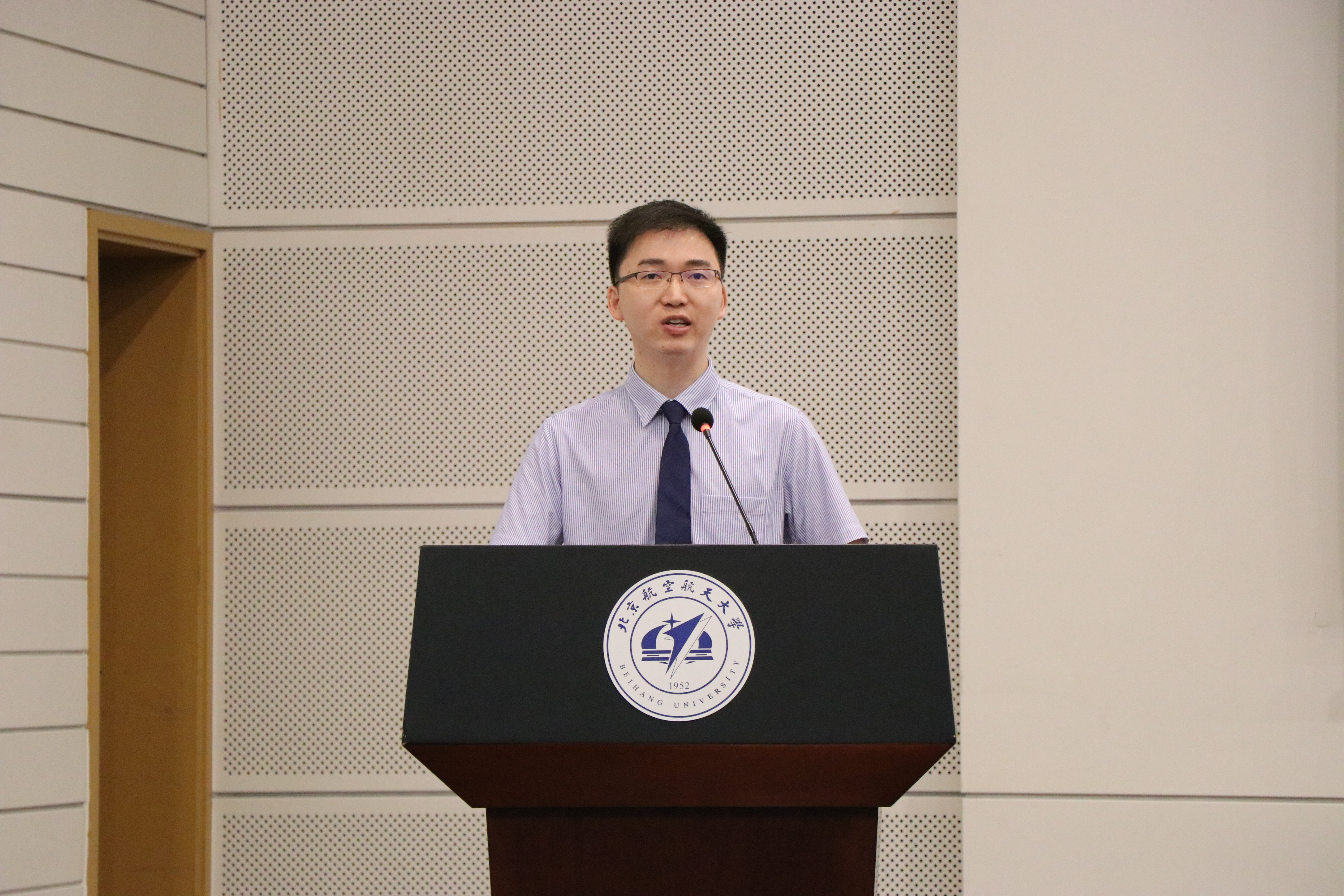 教师代表王静远老师分享了两位优秀学生在365(VIP)英国上市公司发光发热、为国家疫情防控研究舍小我为大我的事迹。并对同学们提出了殷切的期望,期望各位同学珍惜在校时光,专心科研,知行合一,勇于实践,厚植爱国主义情怀,为空天报国献出自己的一份力量。