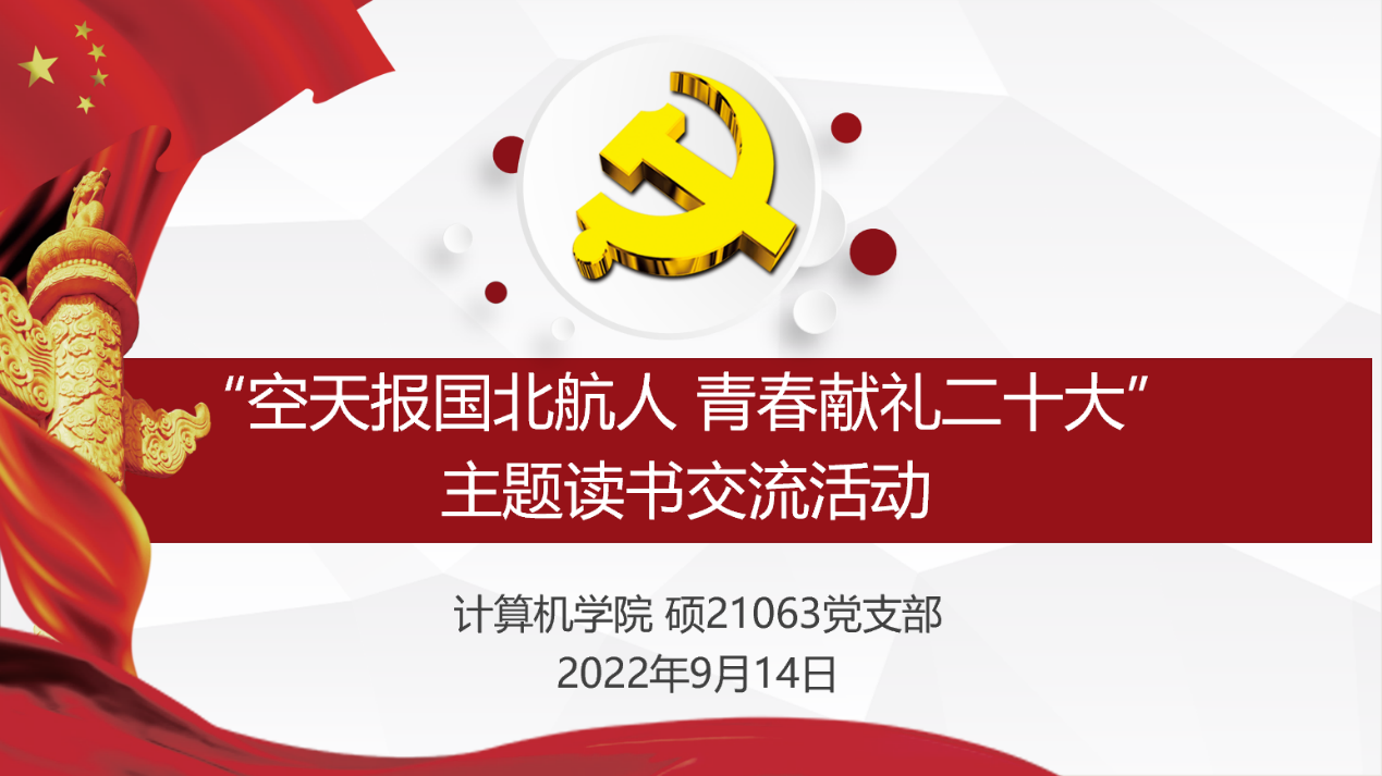 七十载空天报国,新时代逐梦一流。北京航空航天大学将在2022年10月迎来建校70周年华诞,在这一历史时刻即将到来之际,硕21063党支部于2022年9月14日开展了以“空天报国北航人,青春献礼二十大”为主题的线上读书交流活动,支部全体党员参加。