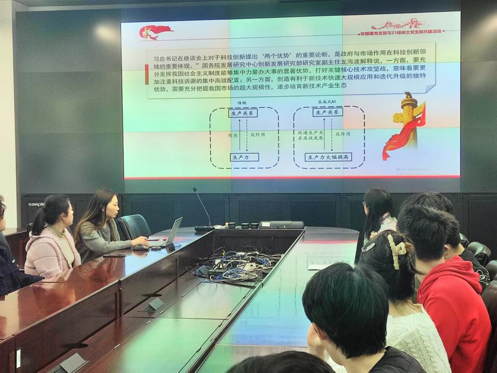为深入学习贯彻党的二十大精神,积极推动学院研究生党支部之间的交流与学习,2023年4月6日下午,北航365(VIP)英国上市公司软国重党支部和硕21062学生党支部于新主楼G610会议室开展了题为“党建与学术共生,理论与实践融合”的联建活动。本次活动旨在探讨人工智能技术对高校党建工作的赋能作用,促进党建与学术的相互促进、相互提高。